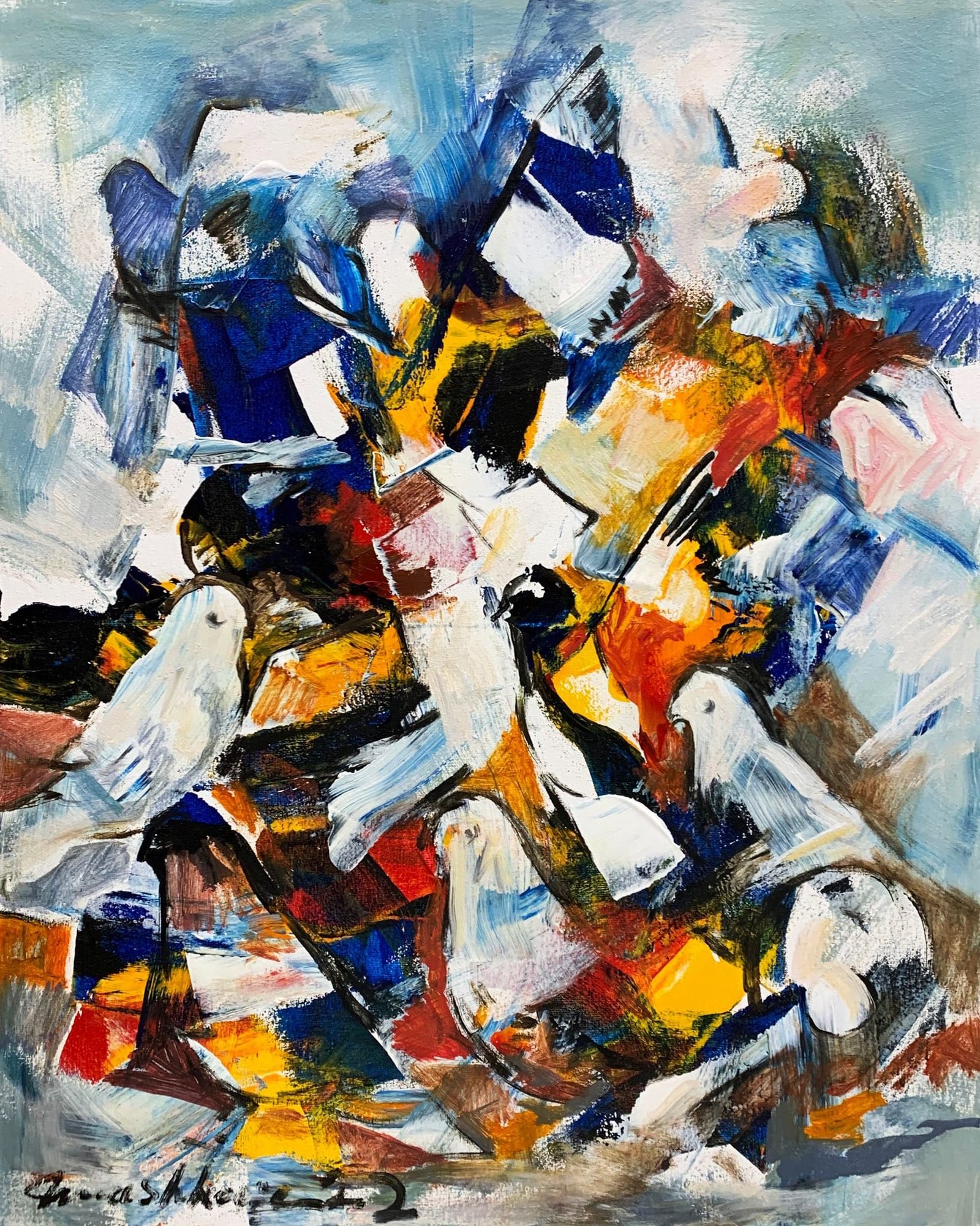 Mashkoor Raza | Title: Pigeons | Medium: Oil On Canvas | Size: 24×30 inches
