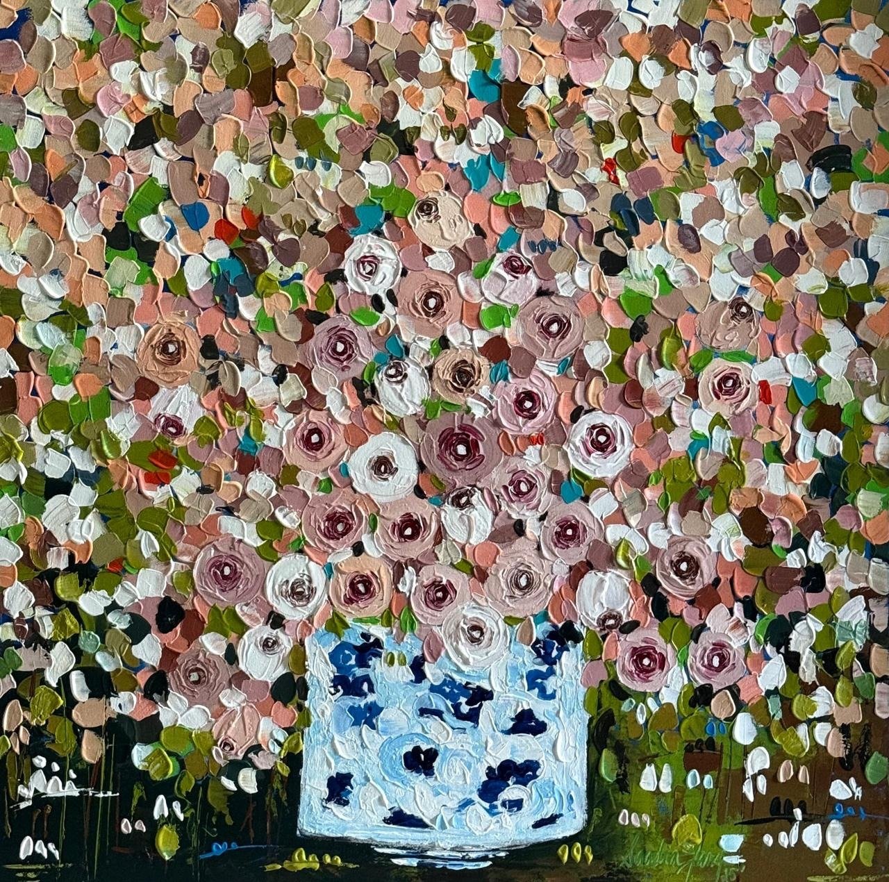 Sadia Faiz | Title: Flower Series | Medium: Oil on Canvas | Size: 30×30 inches