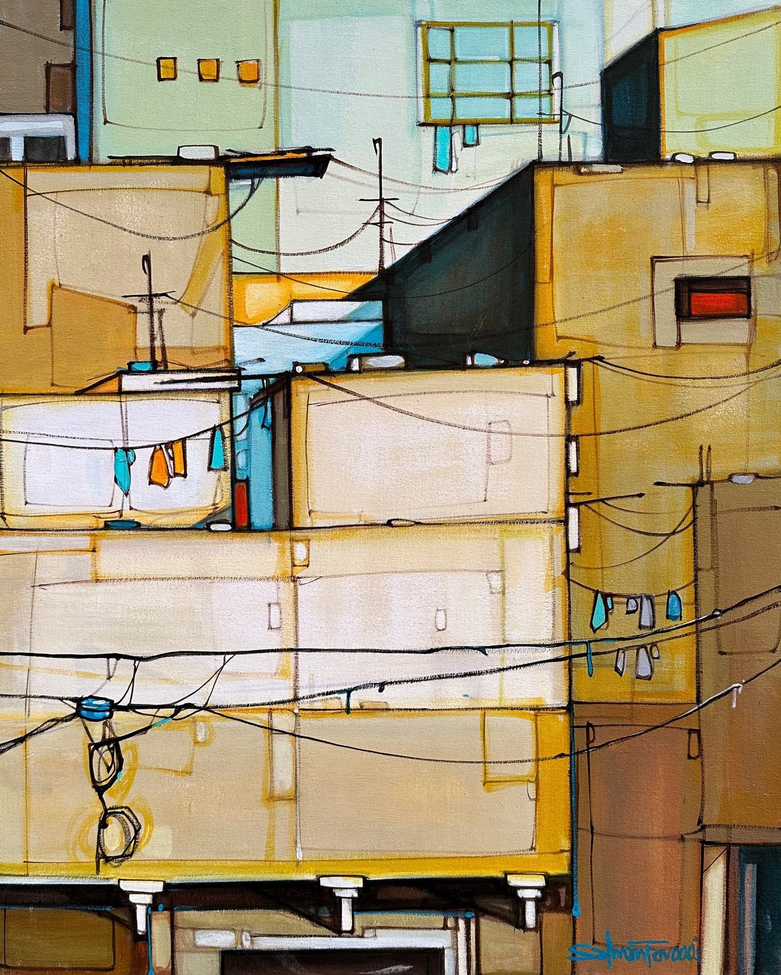 Salman Farooqi | Title: Modern Cityscape | Medium: Acrylic on Canvas | Size: 24×30 inches