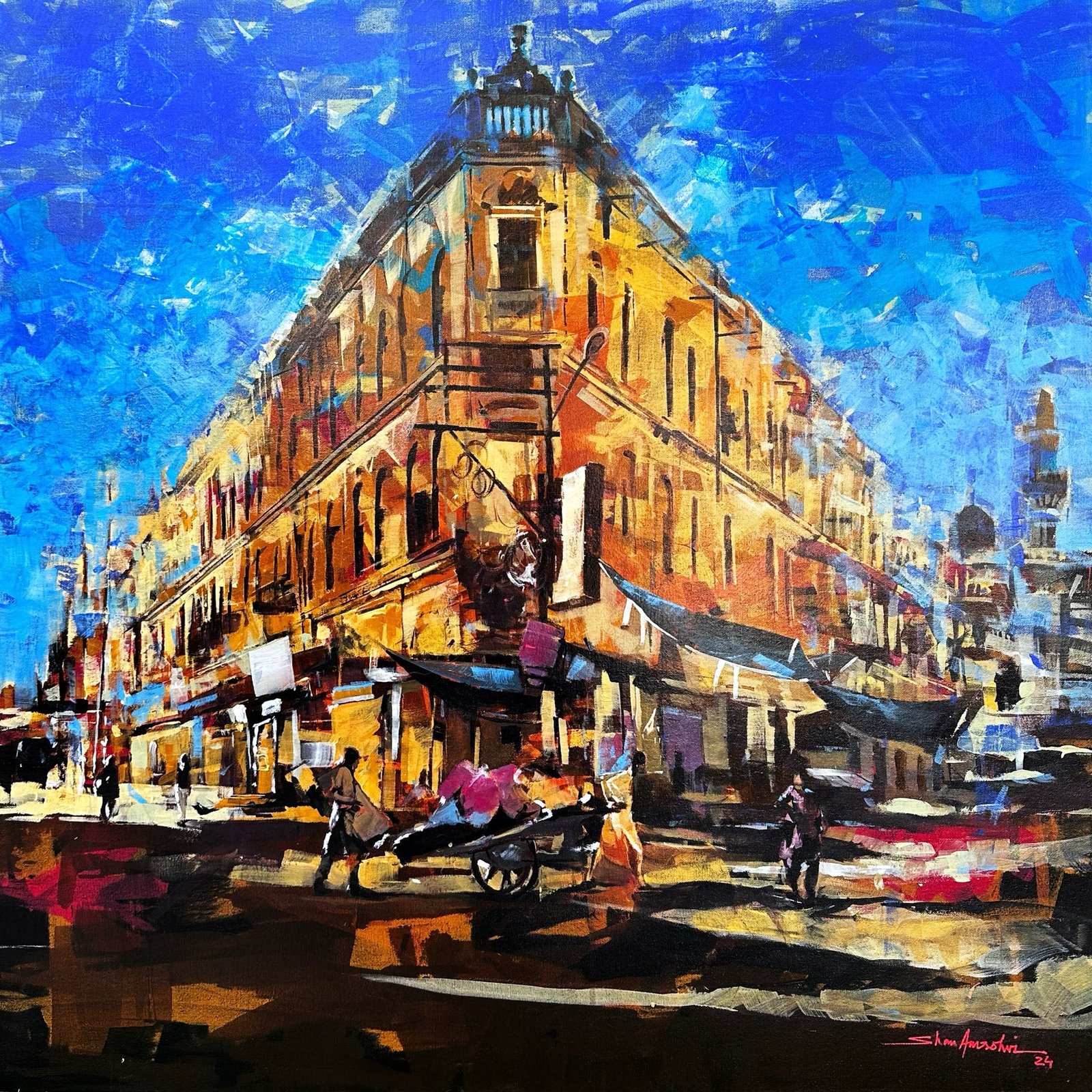 #ShanAmrohvi #KarachiHeritage #HistoricalBuildings #PakistaniArt #AcrylicOnCanvas #CulturalLegacy #PakistaniArchitecture #OldKarachi #UrbanLandscape #CityscapeArt